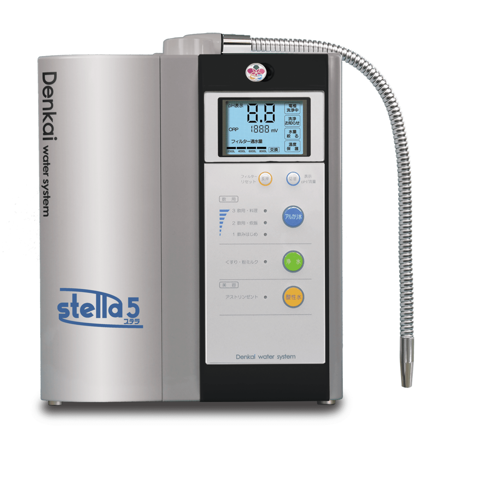 | Method of operation | Push button type (Antioxidant alkaline Water Hydrogen water (KANGEN Water) / acidic / purified water) |